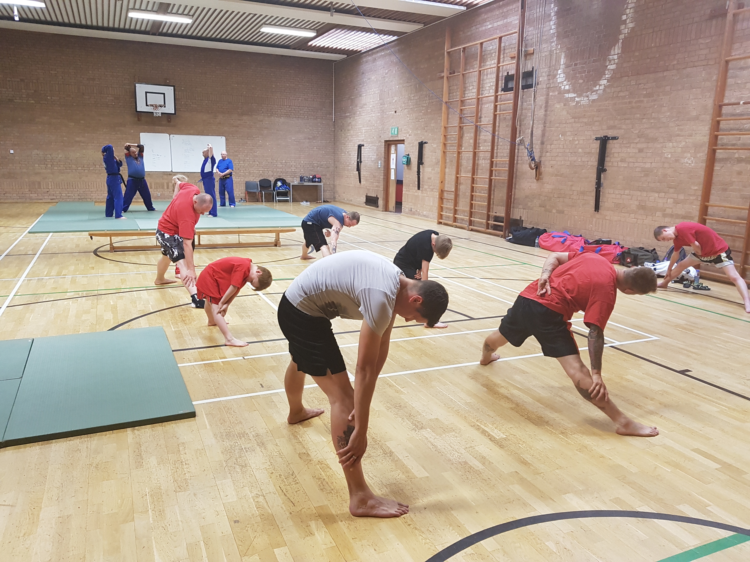 Training consists of a warm up and stretch, circuits to improve fitness, techniques to improve skill and finishes with optional sparring session.